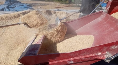 Hasat edilen ürünler belediye imkânlarıyla kırılıp uygun oranlarda karıştırılarak çuvallandı.