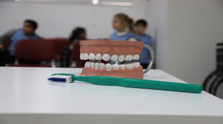 ziyaret ederek hem sağlık kontrolünden geçti hem de ağız ve diş sağlığı konusunda