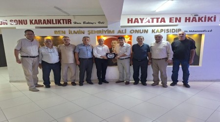 Ziyaret sonunda; Dernek Başkanı Ahmet Hızlan, Vakıf Başkanı Kamer Ali Durur'a plaket takdim etti.